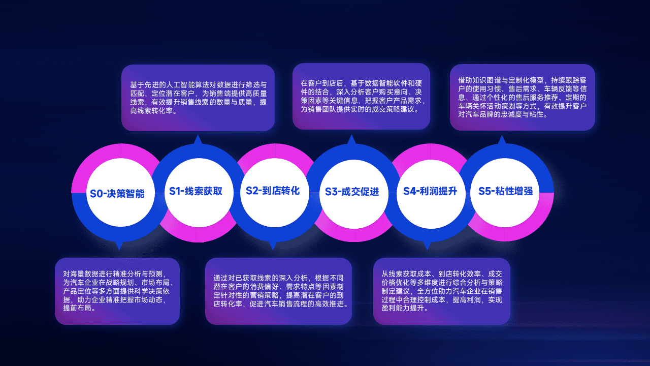 通过拓宽潜在客户来源、、优化线索分配并提高到店转化率,,,,以增强销售效率。。同时,,,,利用线索数据不断优化分析模型,,,,有效提升转化率,,扩大营销影响力。。
